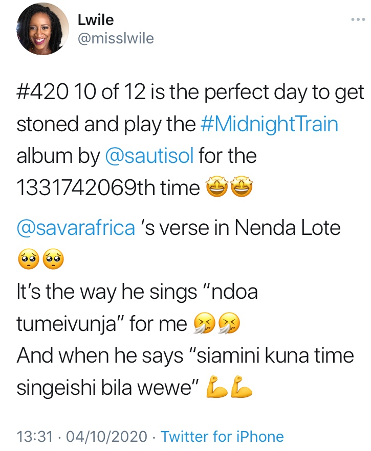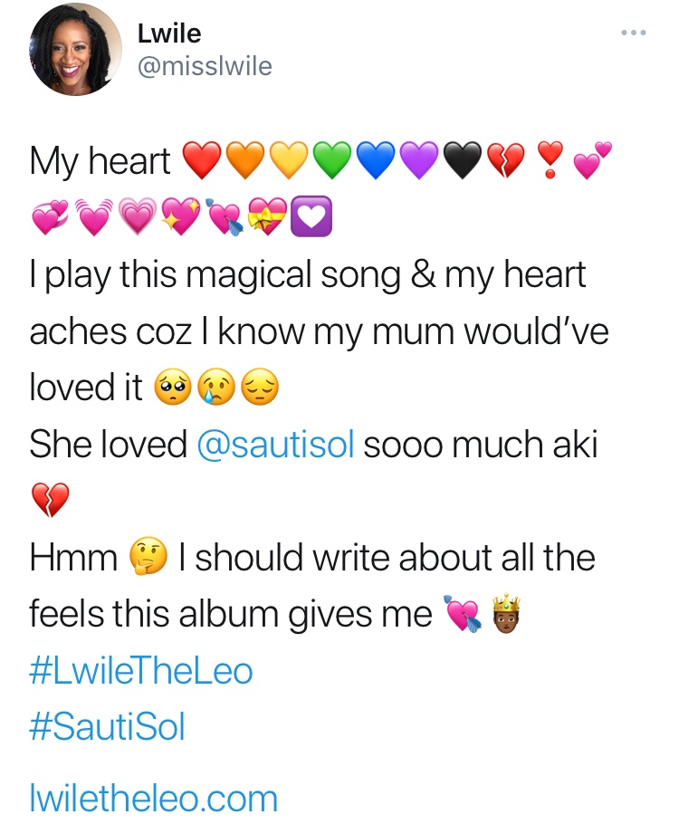 1. I have always been a Sauti Sol Stan and I listened to the album the night it dropped,I even set an alarm just in case I forgot, hata I don’t have the word to describe how I was feeling during the launch😪*chef’s kiss*