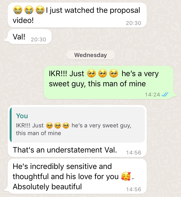 Aaaaaw!!! Thank you sooo much. I know all too well (😉) about saving sth for the best day (another 😉), so I’m glad my proposal post and video made the cut 😃 Di realllllllyyyyyy did sooo good 😌 thank you again ❤️