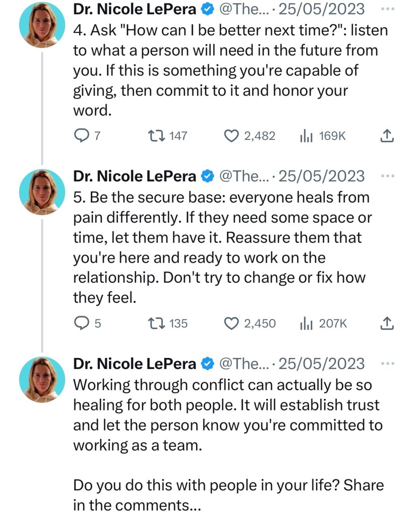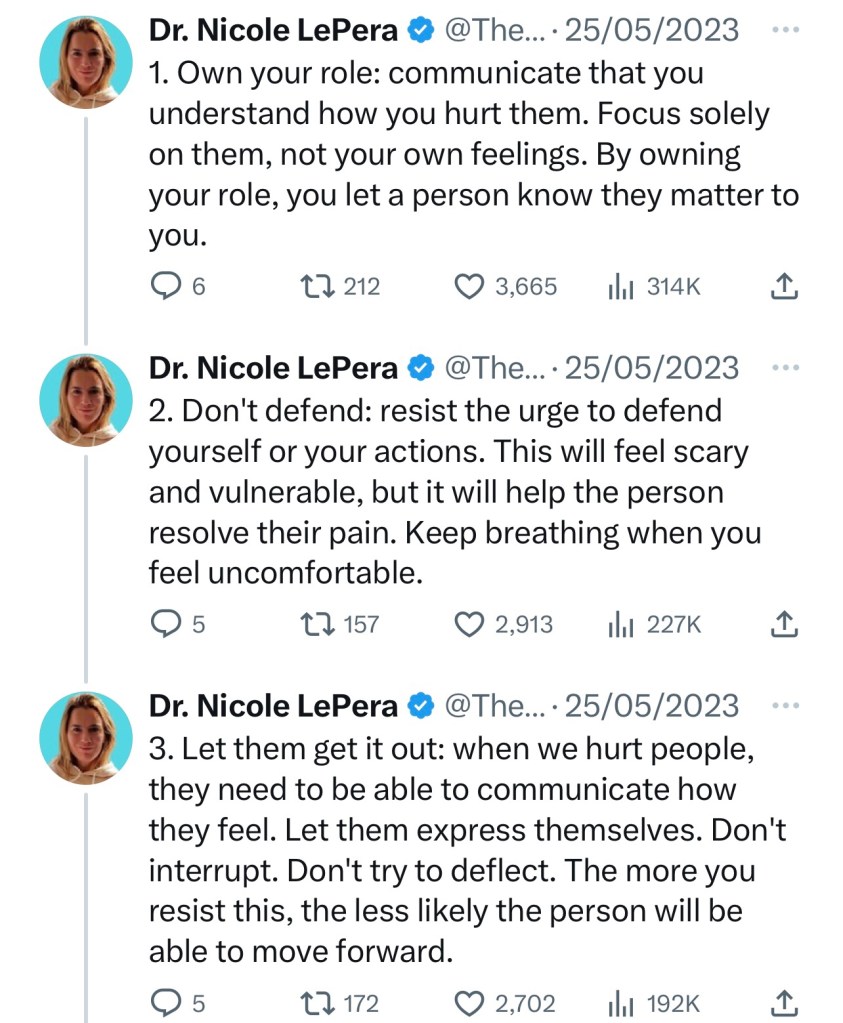 I found two excellent threads from Dr. Nicole LePera (@Theholisticpsyc on Twitter… rather, on X 🙄) and I am sharing them here in hopes that they may one day help someone else the same way they helped me. The first thread is on making amends and the second is on how to repair a relationship which ties back to making amends.
