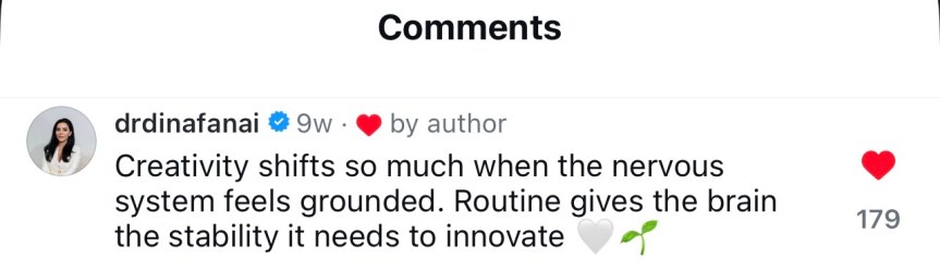 Last December I stumbled across that comment on the Instagram promo for Twyla Tharp’s Huberman Lab podcast episode and it was a major contributor to the blueprint for how I wanna roll from now on. I have always considered myself a creative person, and now that my anxiety is the lowest it has ever been, I want to take full advantage of that and see where my creativity leads me in 2026. I have a routine that is working well for me, though I am still tweaking it here and there. But even as I refine it, I am deliberately prioritising spontaneity just as much as routine, because while consistency fuels productivity, spontaneity fuels creativity. And you can be damn sure I am making space for both, because: